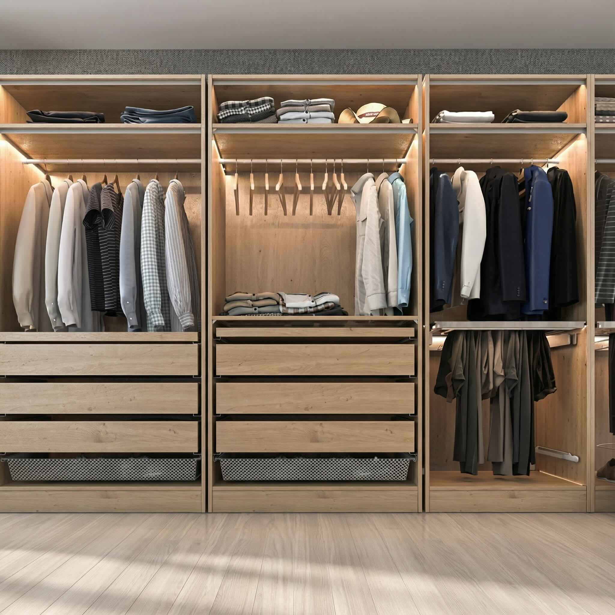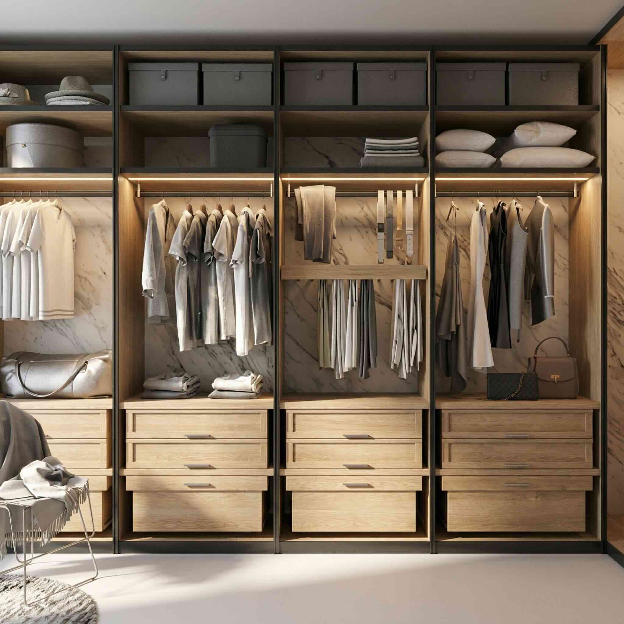 Además, ofrecemos opciones de personalización que incluyen espejos, divisiones ajustables y accesorios específicos para diferentes tipos de ropa y objetos personales, permitiendo que nuestros clientes tengan un control total sobre la configuración de sus espacios.